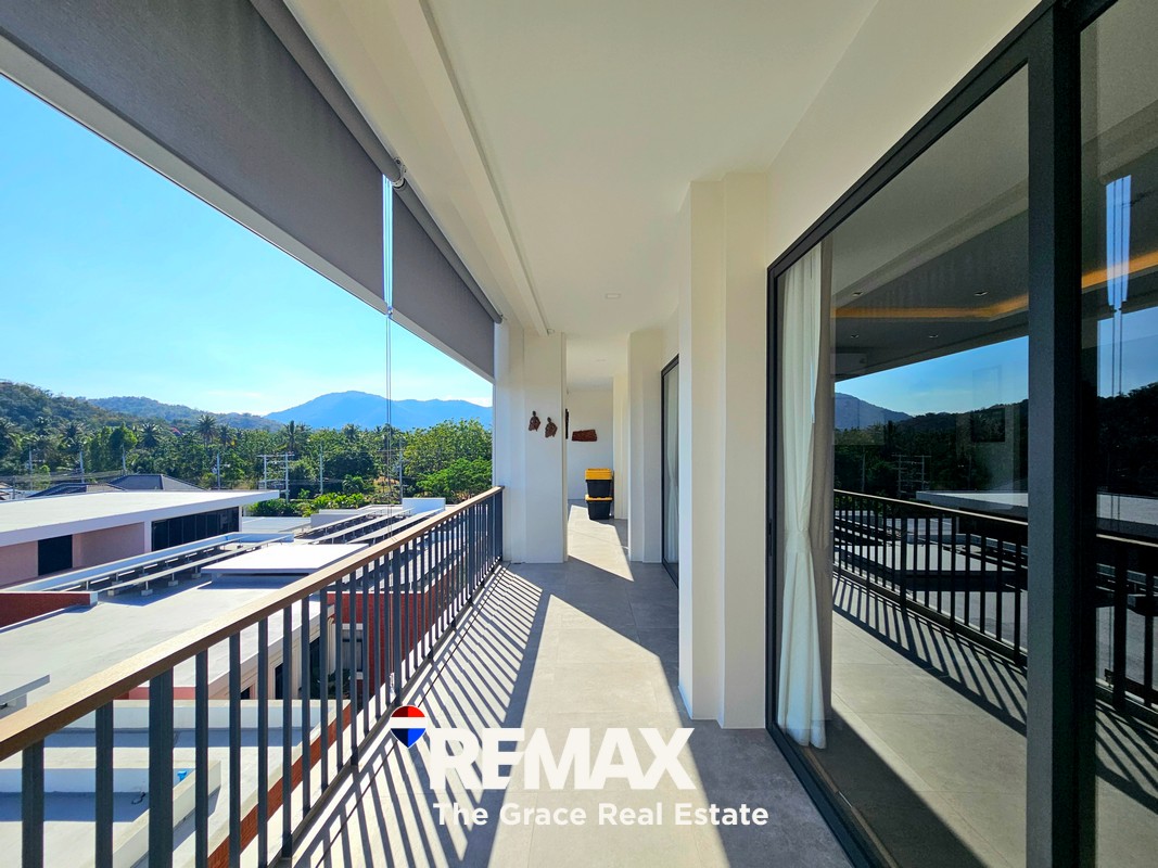 – Mountain, golf course, pool views; and distant sea view